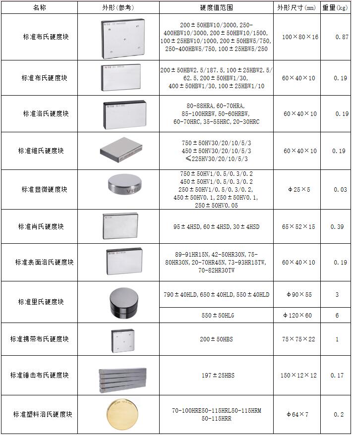 ●標(biāo)準(zhǔn)硬度塊是檢定硬度計(jì)是否在標(biāo)準(zhǔn)規(guī)定的誤差范圍內(nèi)的標(biāo)準(zhǔn)試塊;