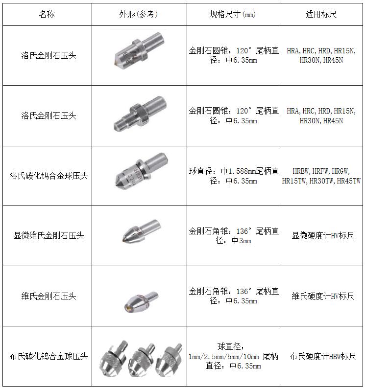 各種金剛石壓頭、碳化鎢合金球壓頭及鋼球壓頭,